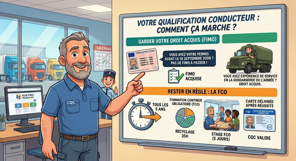 Beaucoup de conducteurs confondent les deux. Même si vous êtes dispensé de FIMO, vous devez être à jour de votre FCO (Formation Continue Obligatoire).